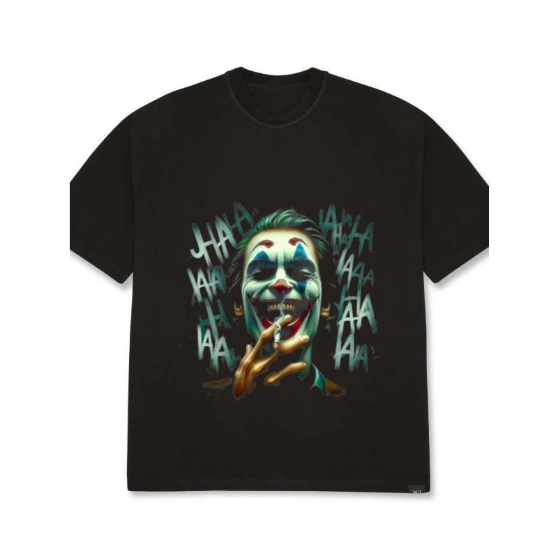 Футболка оверсайз черная с принтом лица Джокера и надписью «Ха-ха» уличная мода повседневная одежда