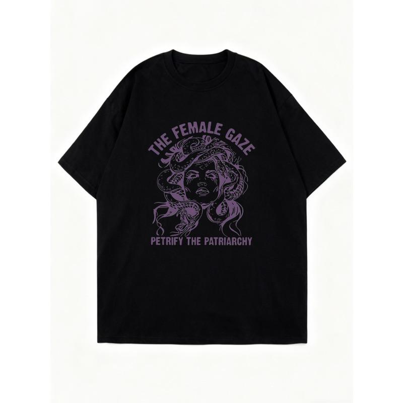 Черная футболка оверсайз с графическим принтом The Female Gaze Medusa Design Petrifly The Patriarchy Женский повседневный уличный стиль Модный топ