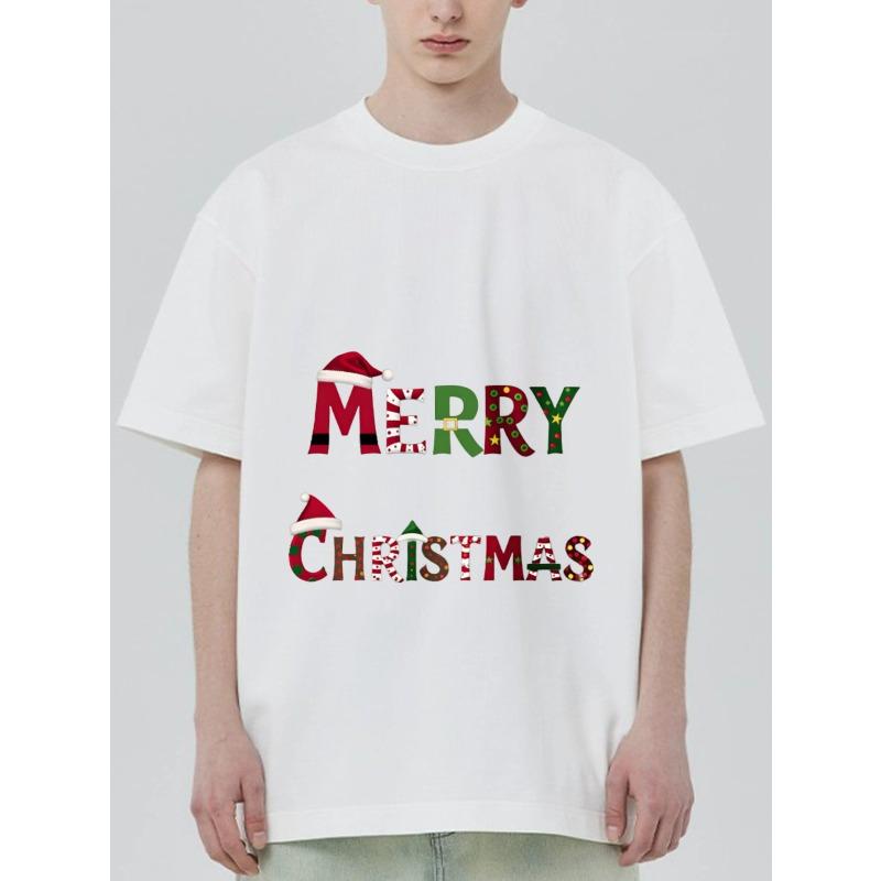 Рождественская футболка черная Merry Christmas узор с шапкой Санты и леденцом тростью праздничная одежда для вечеринки — купить товар онлайн с бесплатной доставкой по всему миру!