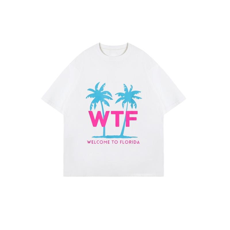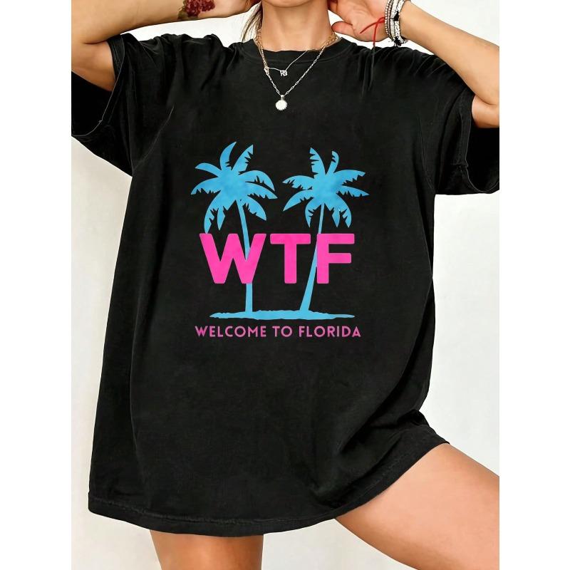 Футболка оверсайз черная с принтом пальм и надписью Wtf Welcome To Florida Повседневная летняя одежда
