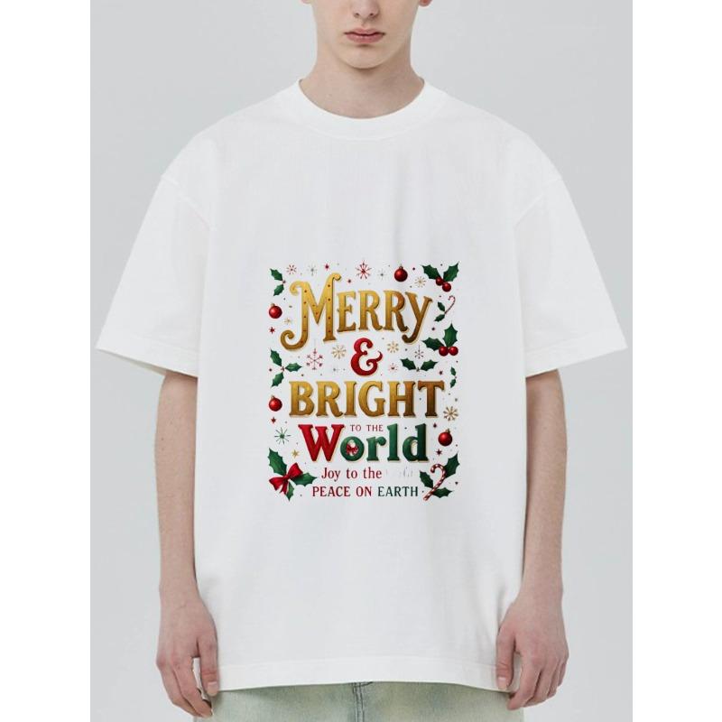 Merry and Bright World Christmas T-Shirt Black Holiday Text and Floral Design for Christmas Celebration — купить товар онлайн с бесплатной доставкой по всему миру!