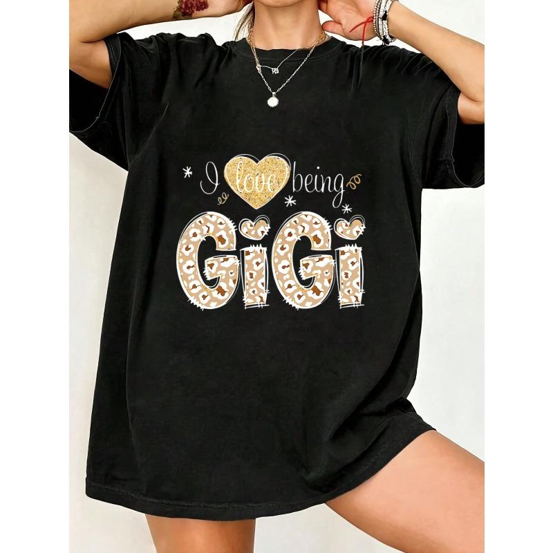 Черная футболка оверсайз Я люблю быть Джиджи Леопардовый принт и дизайн сердца с блестками для подарка бабушке Повседневная одежда — купить товар онлайн с бесплатной доставкой по всему миру!