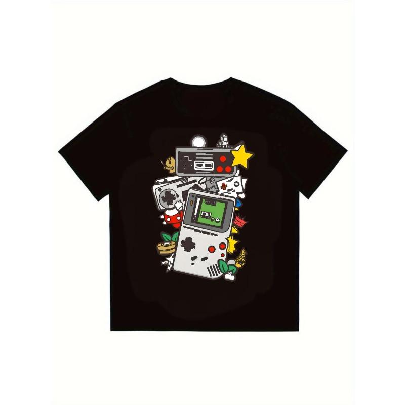 Черная футболка с принтом ретро-игровой консоли, повседневный уличный топ для мужчин и женщин