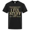 Черная футболка с принтом Fix Stuff and I Know Things для повседневной носки