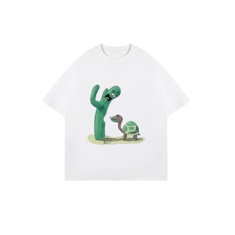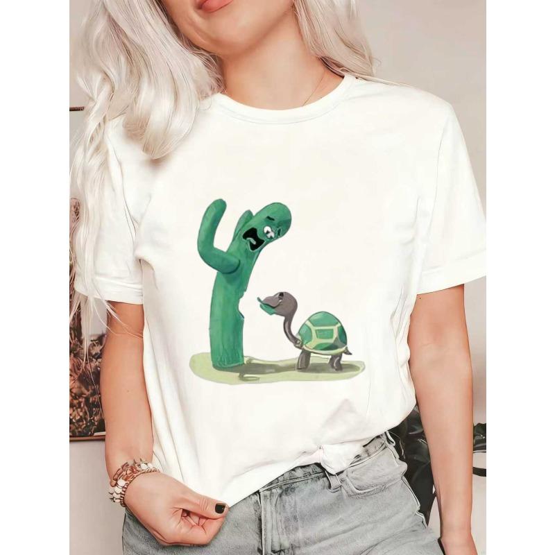 Футболка оверсайз черная с принтом кактуса и черепахи, повседневная одежда для женщин, летняя уличная мода, топ