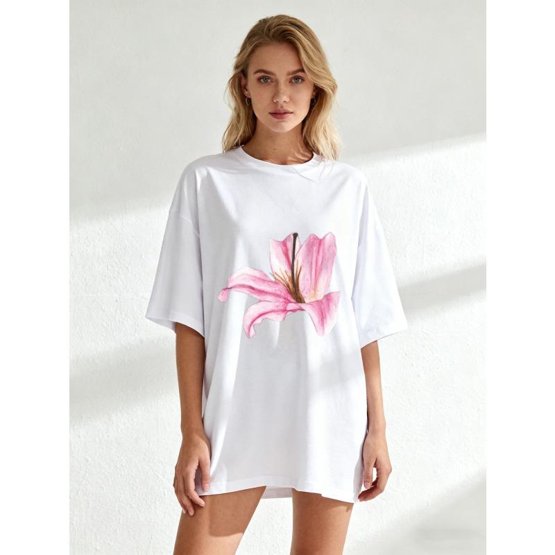 Черная футболка оверсайз с принтом розовой лилии для повседневной носки и летних образов — купить товар онлайн с бесплатной доставкой по всему миру!