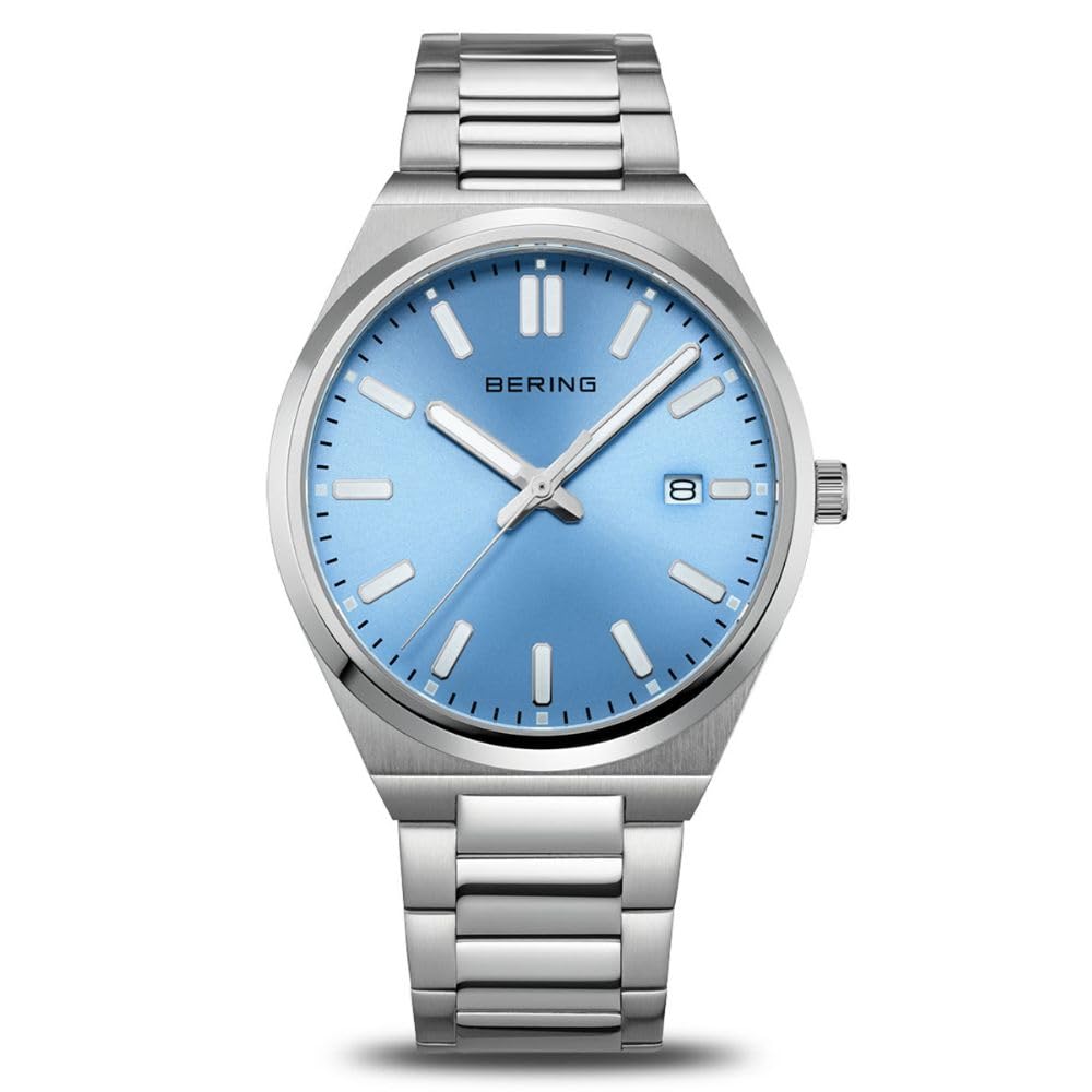 BERING Унисекс Часы с Классическим Звеном Синие и Сапфировые Тонкий Датский Скандинавский Дизайн [Официально Импортировано] Мужской Ремешок, Серебристый, 17639-707, Кристалл, Корпус,