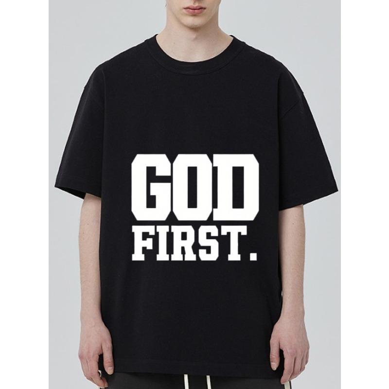 Черная футболка God First Религиозное утверждение Графическая футболка для мужчин и женщин Повседневная одежда Церковный наряд Одежда, вдохновленная верой