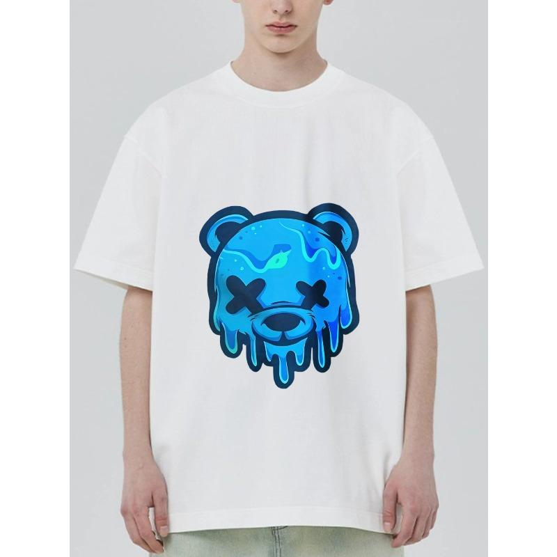 Черная футболка с принтом плавящегося медвежьего лица синего цвета для повседневной носки — купить товар онлайн с бесплатной доставкой по всему миру!