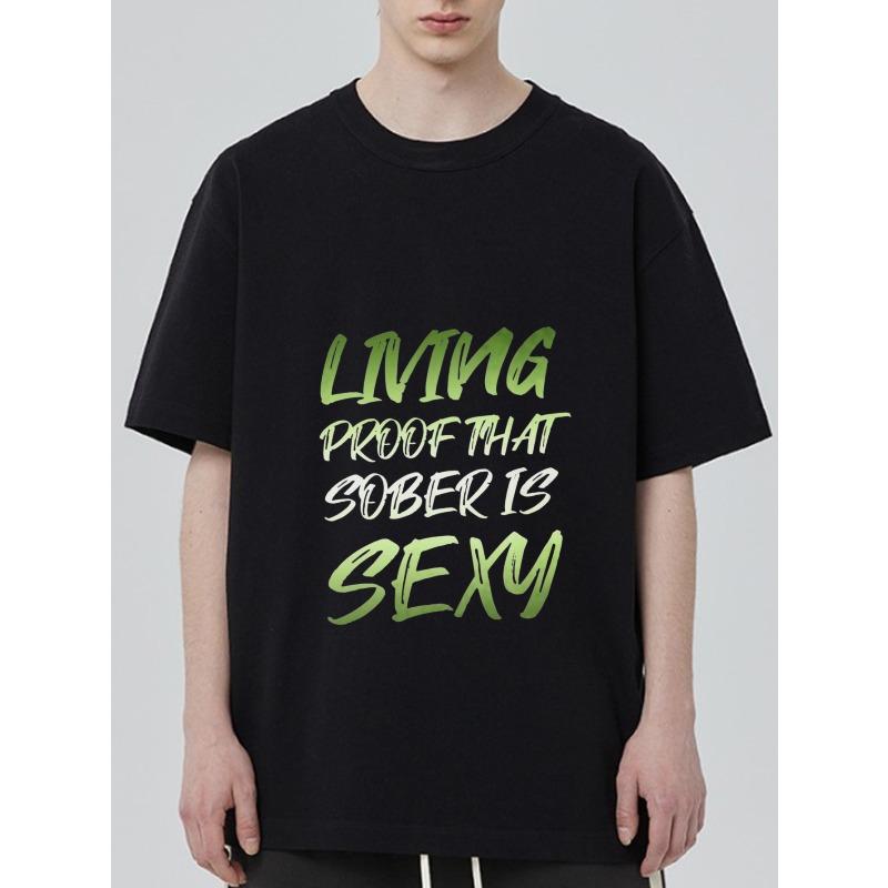 Black T Shirt with Living Proof That Sober Is Sexy Print for Casual Wear and Everyday Style — купить товар онлайн с бесплатной доставкой по всему миру!