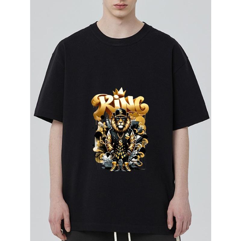 Черная футболка с принтом короля льва и золотой короны для повседневной носки — купить товар онлайн с бесплатной доставкой по всему миру!