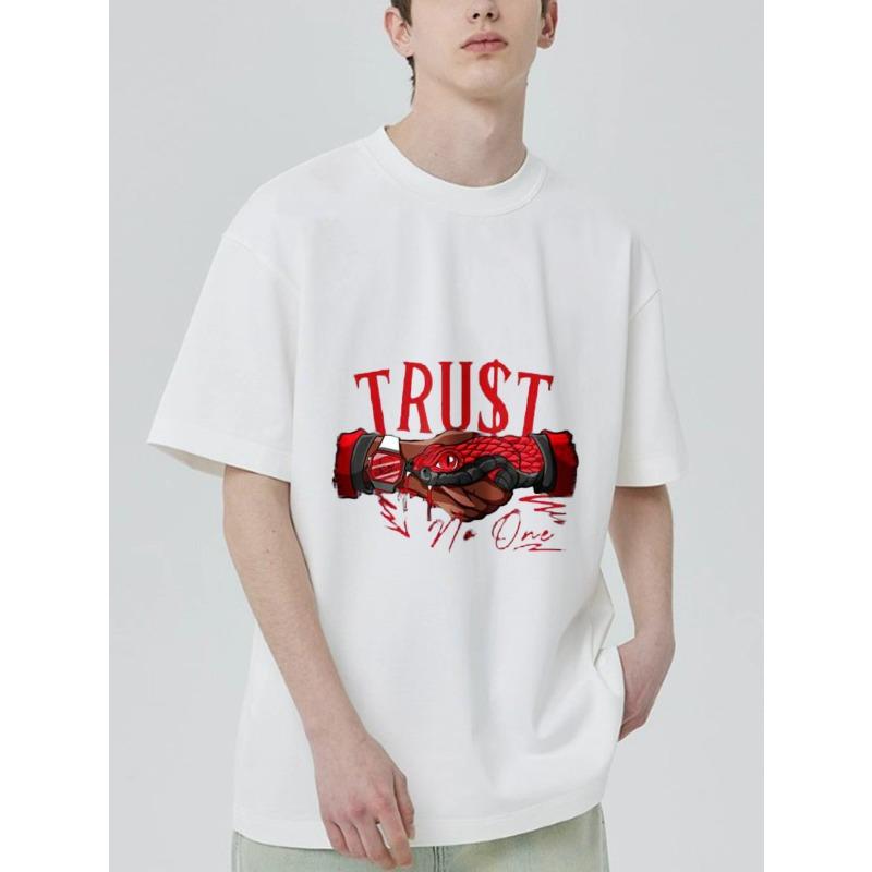 Black T-Shirt with Red Snake Hand and Trust No One Print for Casual Wear — купить товар онлайн с бесплатной доставкой по всему миру!
