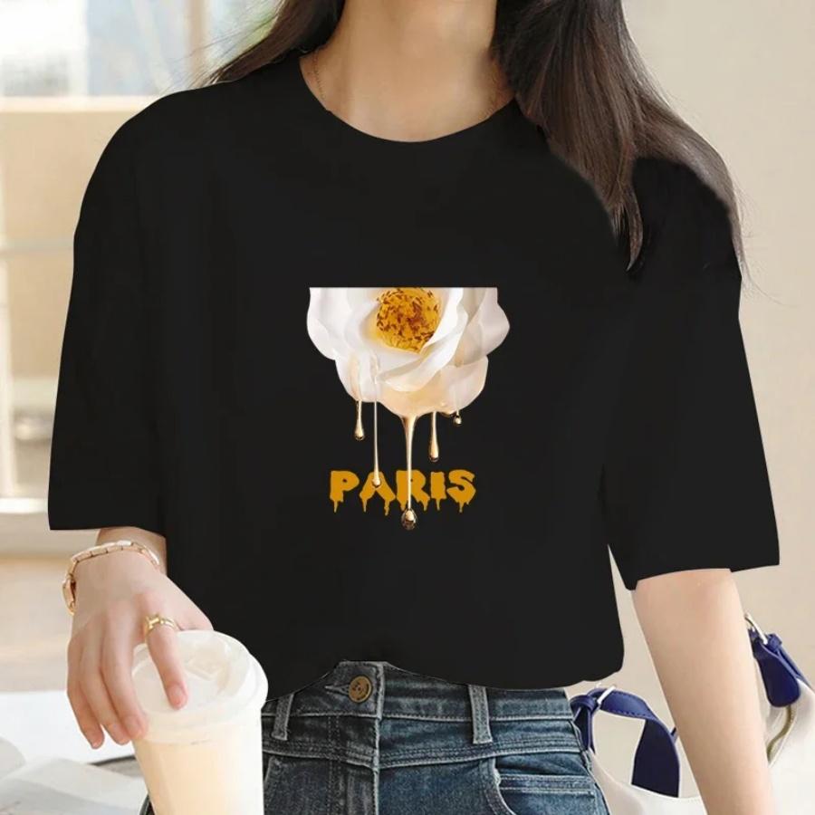 Креативность Роскошный Бренд Париж Цветочный Графический Футболка Женская Летняя Повседневная Футболка Женская Уличная Одежда Футболка с Коротким Рукавом