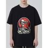 Черная футболка с графическим дизайном «Скелет с биноклем. О, смотрите, всем плевать» для повседневной носки