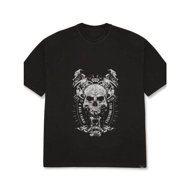 Мужская футболка оверсайз черная с графическим принтом черепа и крыльев и текстовым дизайном, уличная одежда, повседневная одежда