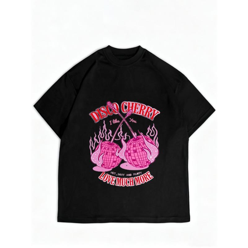 Disco Cherry T Shirt Black Pink Disco Ball Cherry Print I Like You Love Much More Hot Sexy And Party Graphic Tee Women Casual Wear Summer Party Outfit