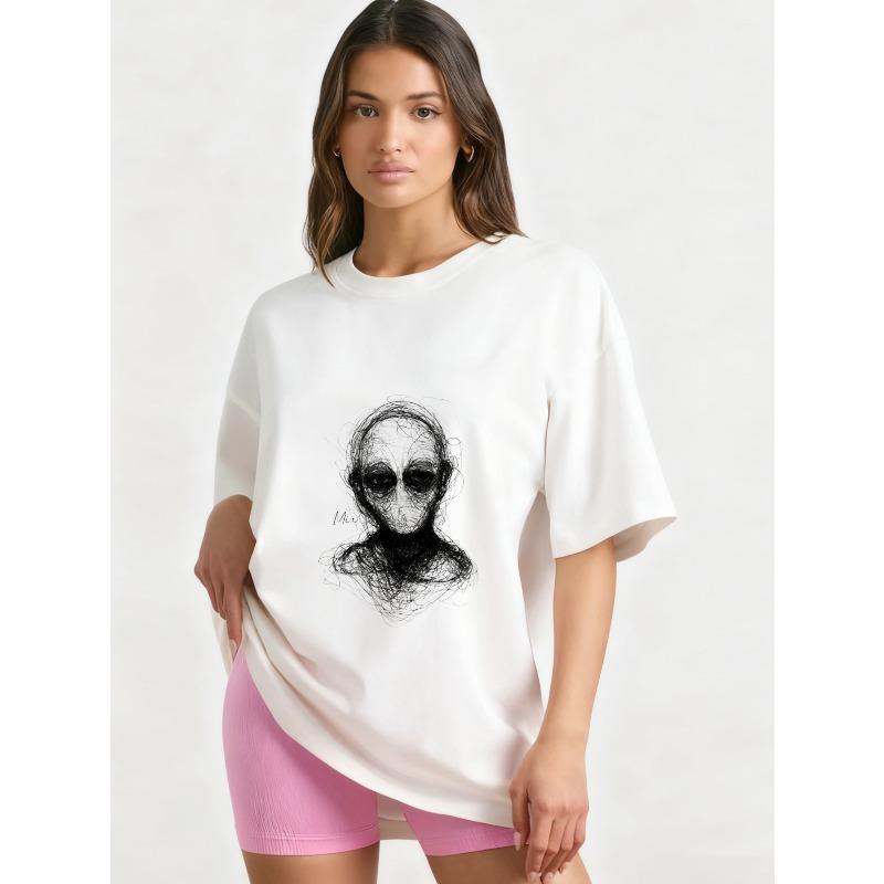 Футболка оверсайз черная с абстрактным принтом лица инопланетянина, повседневный уличный стиль, модный топ для женщин и мужчин — купить товар онлайн с бесплатной доставкой по всему миру!