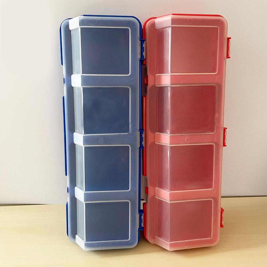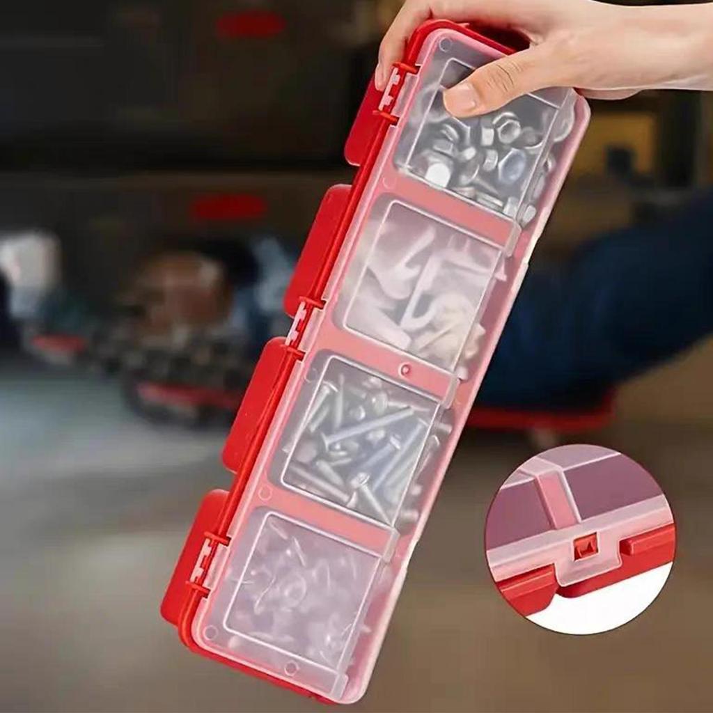 4 Compartments Screws Organizer Box with Buckle Sloping Opening Divided Container Case Semi Transparent Lid for Components Parts