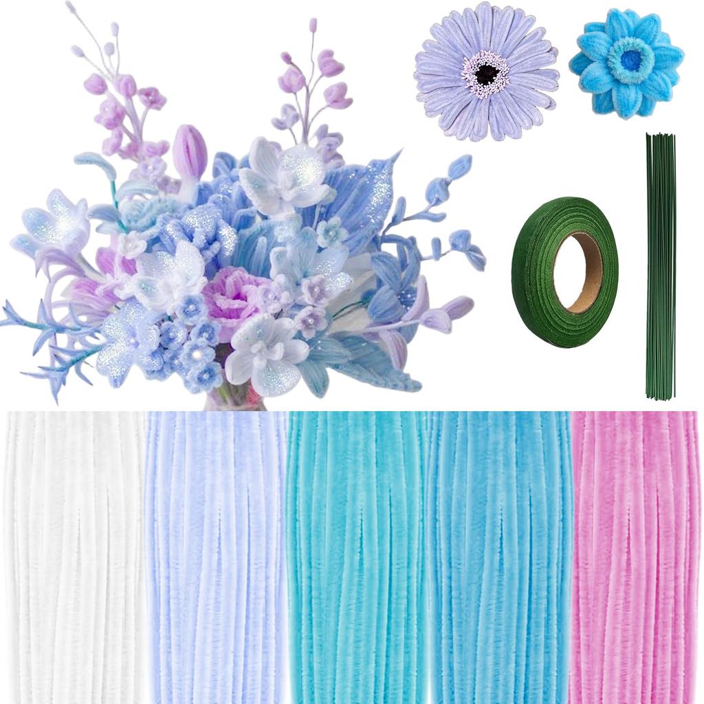 Набор для поделок «Цветы из синельной проволоки», 521 шт., пастельная синельная проволока, сделай сам, стебли из синельной проволоки, набор для изготовления стеблей цветов со стеблями и лентой