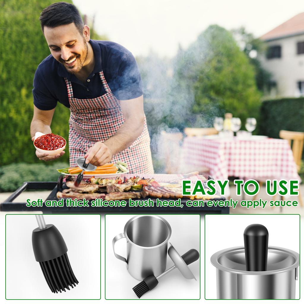 Нержавеющая сталь Кастрюля для поливания соусом Масляная кастрюля для поливания соусом с кисточкой 500 мл Кастрюля для хранения масла Банка для хранения соуса для барбекю Кухонные аксессуары