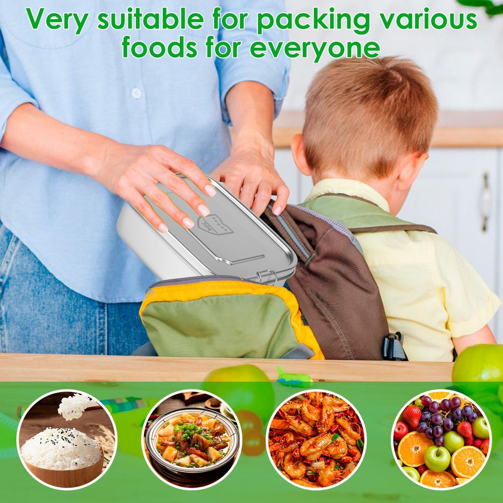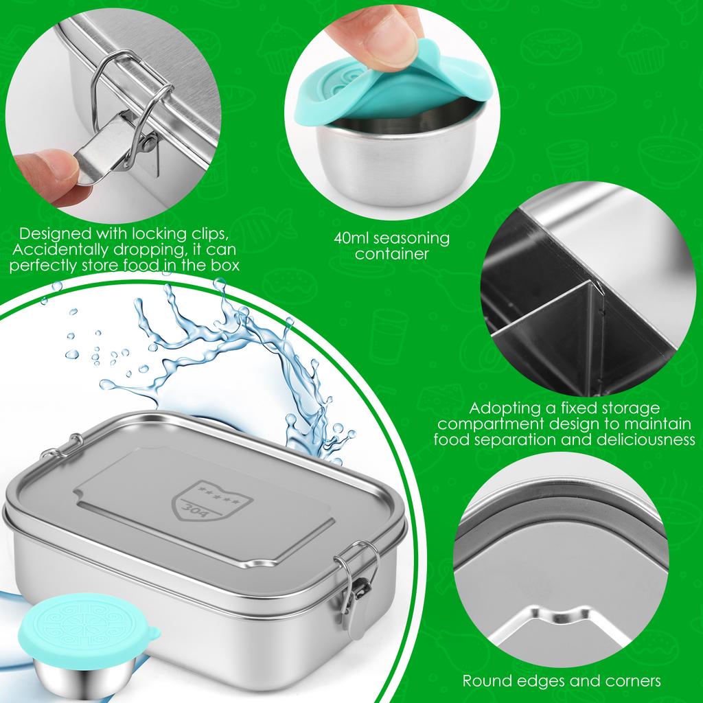 304 Stainless Steel Lunch Box 3 Compartments Lunch Boxes 1500ML Food Container with 2 Seasoning Boxes for Children's and Adults