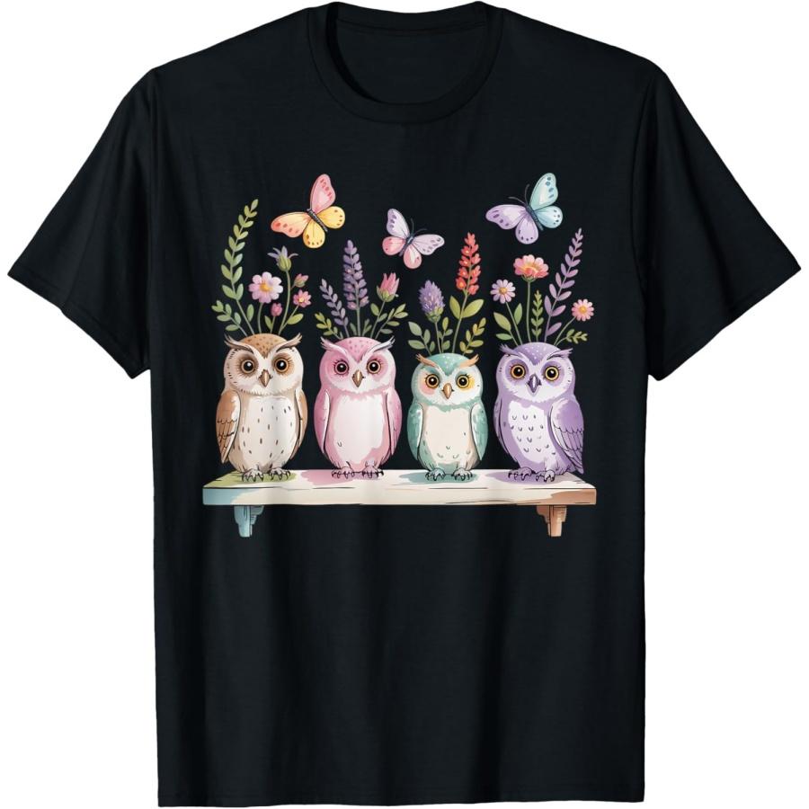 Cute Owl Lover Floral butterfly Nature Aesthetic Women Girls T-Shirt