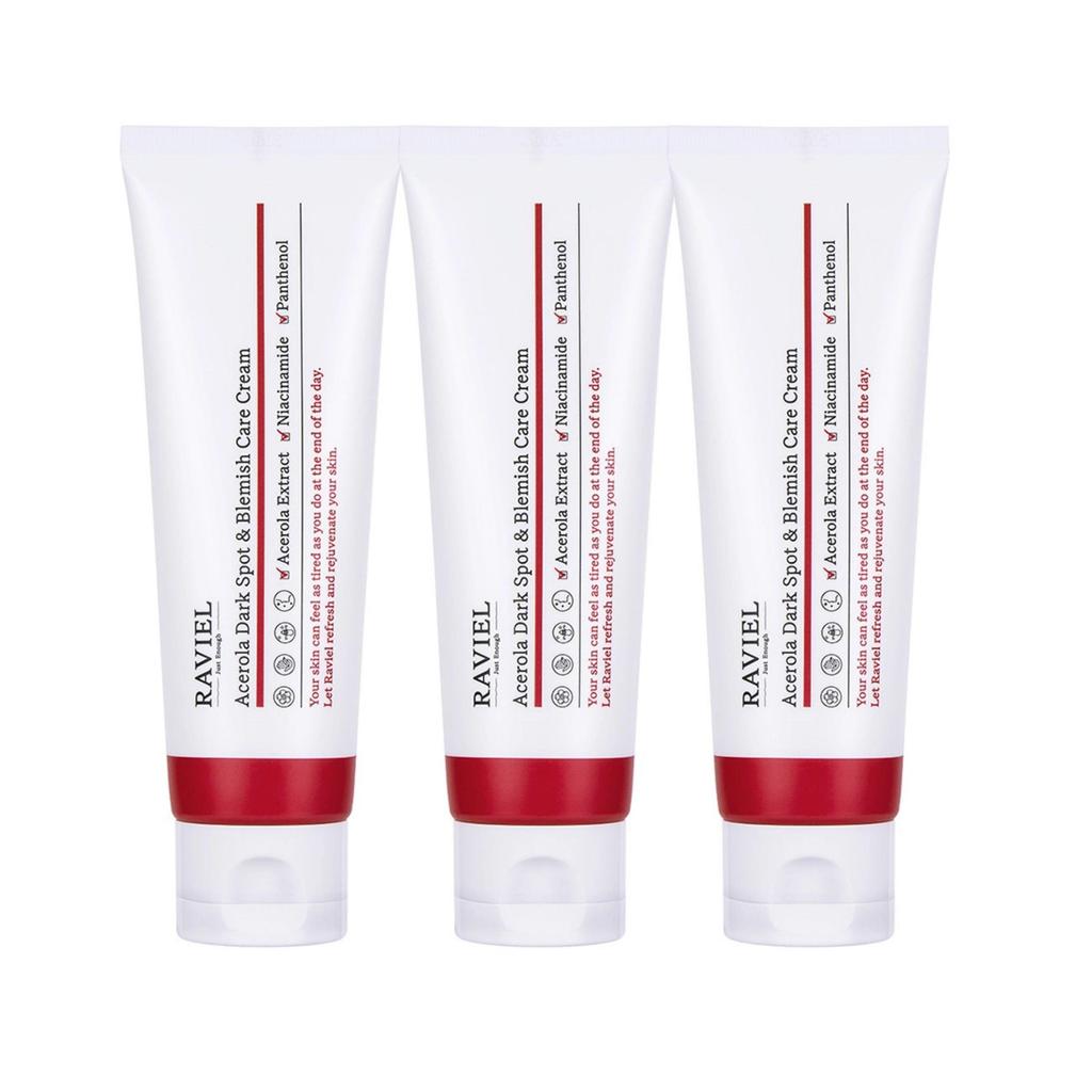 Крем для ухода за пигментными пятнами и темными участками кожи Raviel Acerola — это осветляющий увлажняющий крем, формула которого содержит экстракт вишни ацеролы, известной своим естественным высоким содержанием витамина С.. Помогает заметно уменьшить пигментные пятна, следы от акне и неровный тон кожи, обеспечивая освежающее увлажнение.. Легкий крем впитывается гладко, не оставляя жирного блеска, делая кожу более чистой, сияющей и сияющей.. Этот набор включает три полноразмерных тюбика по 80 мл для долгосрочного ухода за пигментацией.