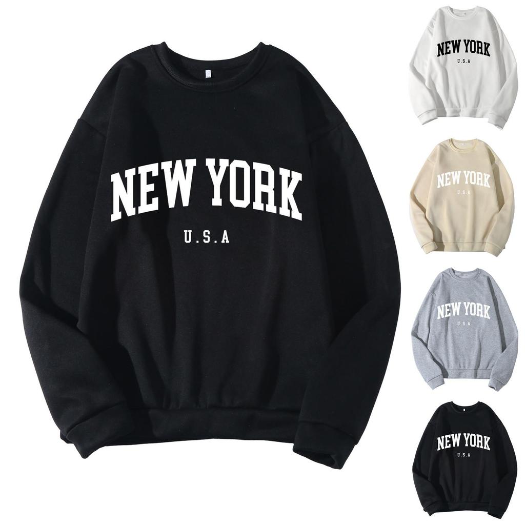 Повседневная женская толстовка с капюшоном в американском винтажном стиле Нью-Йорка, толстовки с буквенным принтом и графикой, с длинными рукавами, простая модная одежда, топы оверсайз