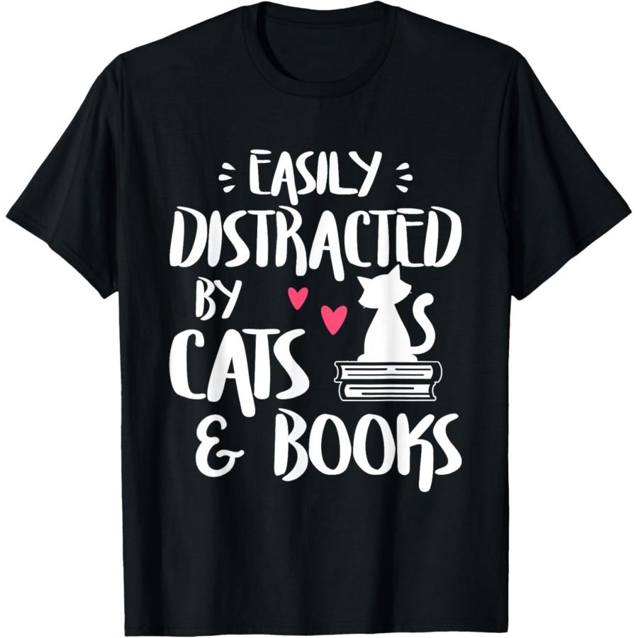 Легко отвлекаюсь на кошек и книги - Любитель кошек и книг, футболка с коротким рукавом