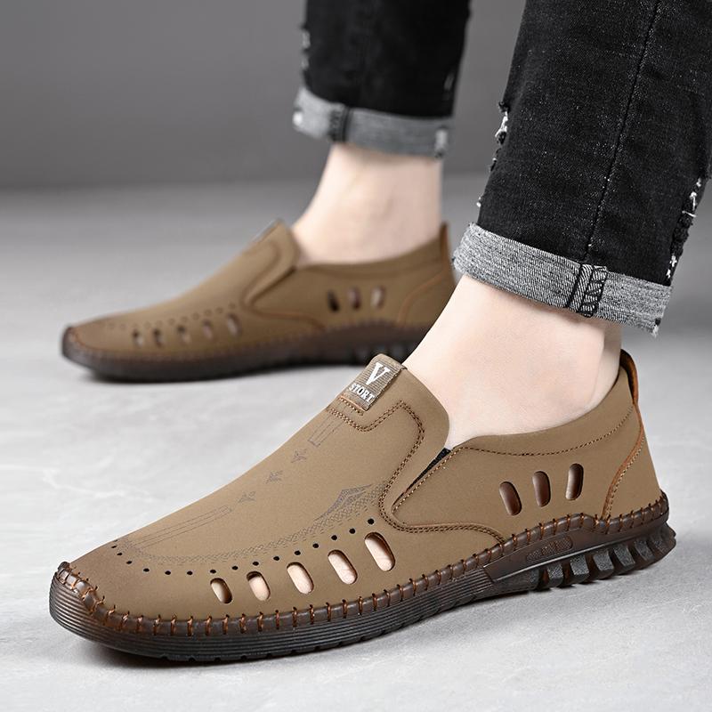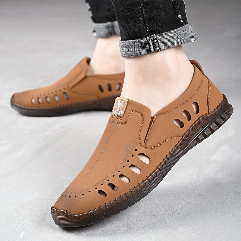 Модные мужские мокасины с открытыми носками, модные повседневные туфли из мягкой кожи, дышащая летняя мужская обувь на плоской подошве, кроссовки, мужская обувь
