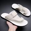 Модные летние мужские новые пляжные крутые кожаные мужские шлепанцы Модные мужские дизайнерские простые легкие удобные уличные комфортные шлепанцы