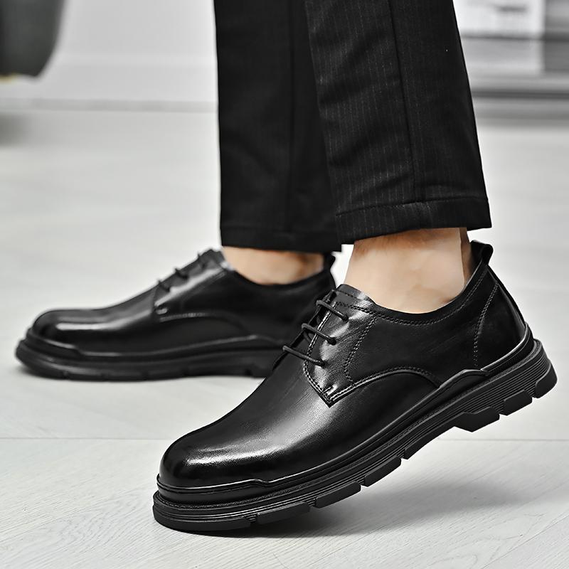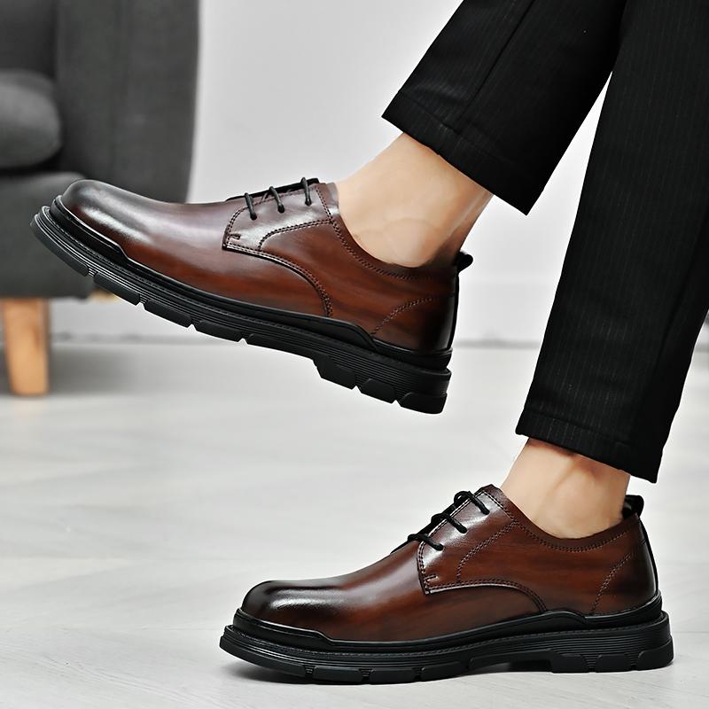 Модный бренд Высокое качество Мужская повседневная кожаная деловая обувь Удобная толстая подошва Британский стиль Мужская обувь Противоскользящая уличная обувь Оксфорды