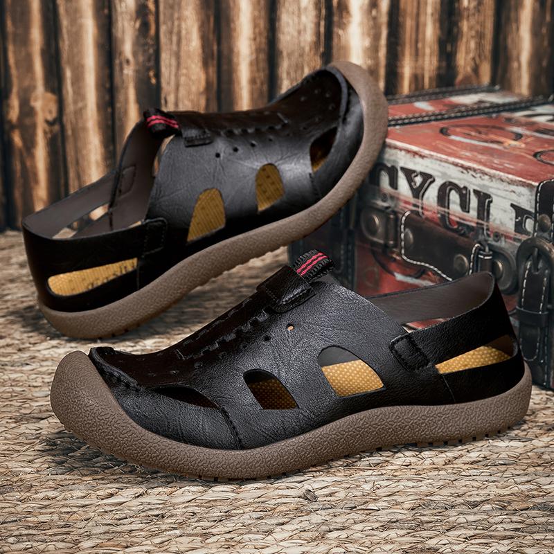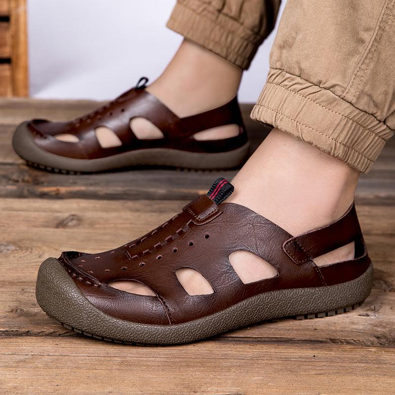 Модные дышащие мужские пляжные слипоны на мягкой подошве, легкие прогулочные сандалии, летние уличные балетки, мужские кожаные повседневные сандалии
