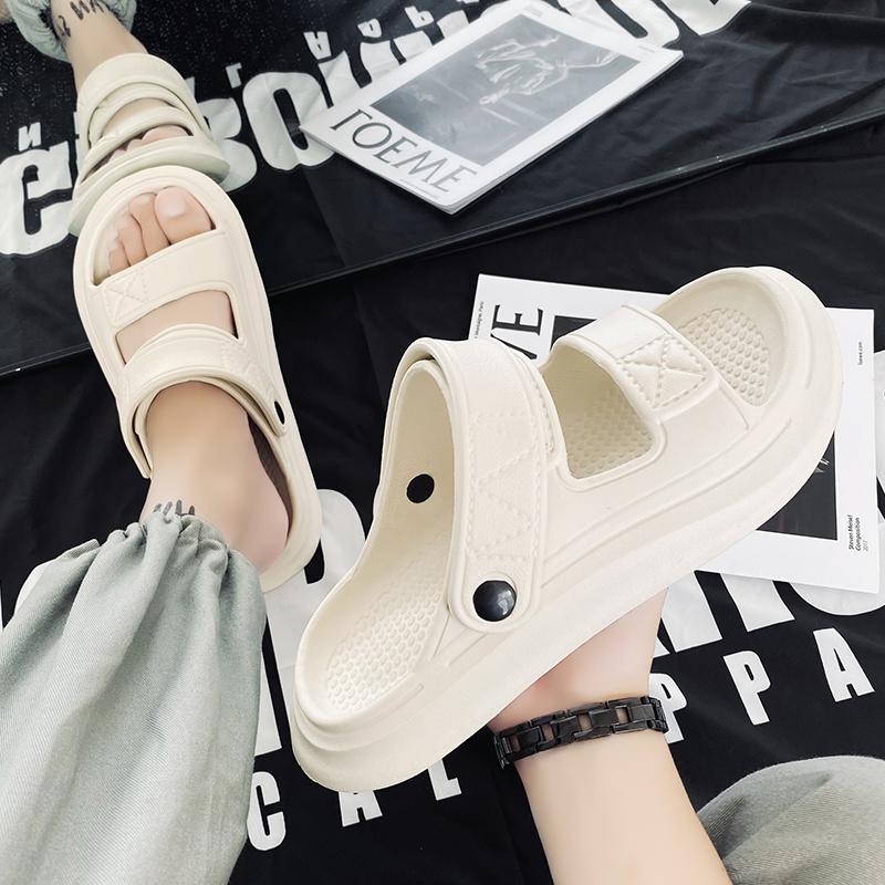 Модные шлепанцы для мужчин, летняя уличная обувь, нескользящие, с защитой от запаха, сандалии на толстой подошве, мужские летние уличные сандалии двойного назначения для пляжа