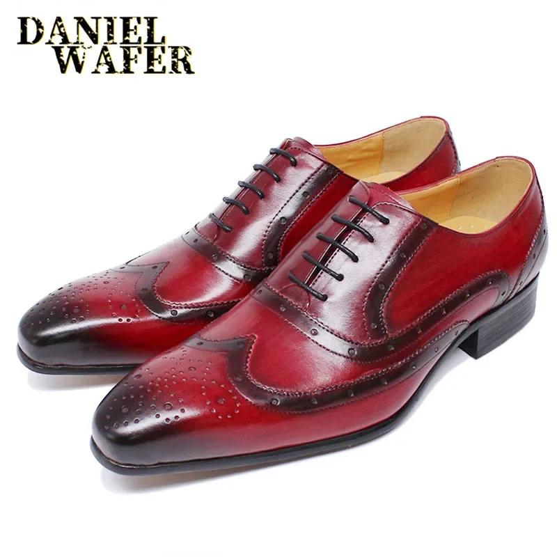 Мода Мужская Мода Оксфорды Черные Красные Заостренный Мысок Дерби На Шнуровке Формальные Кожаные Туфли для Офиса Свадебное Платье Роскошь