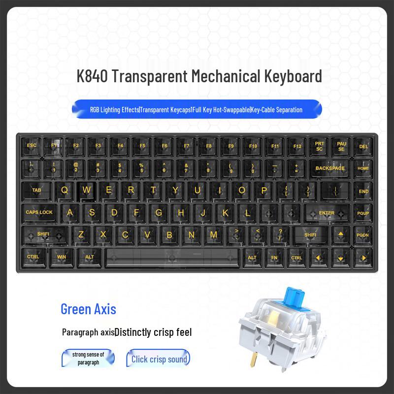 Y-FRUITFUL 84-Key Wired Hot-Swappable Mechanical Keyboard with Transparent Keycaps & Blue Switches — купить товар онлайн с бесплатной доставкой по всему миру!