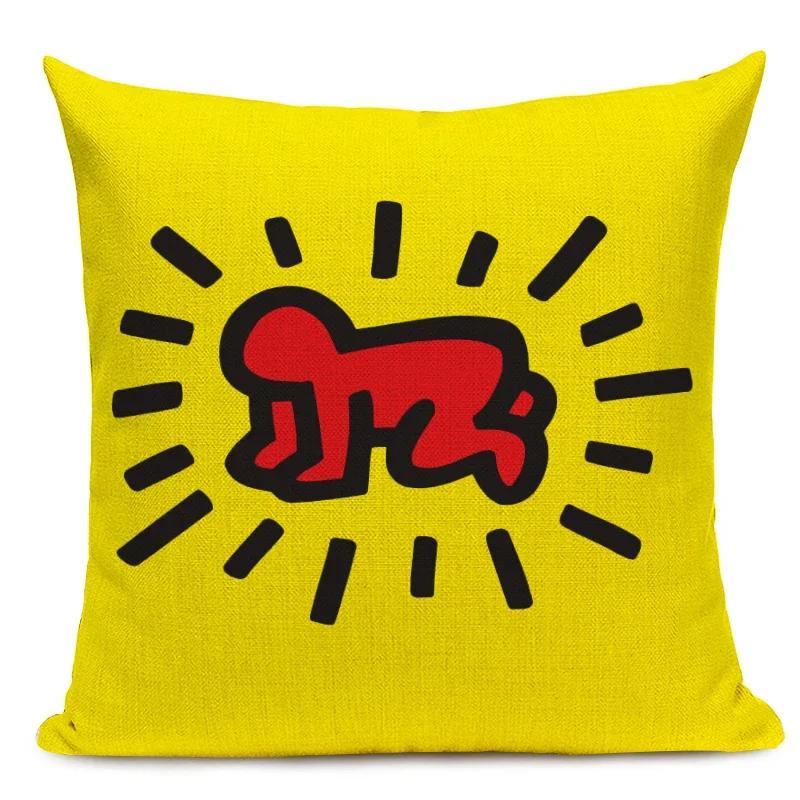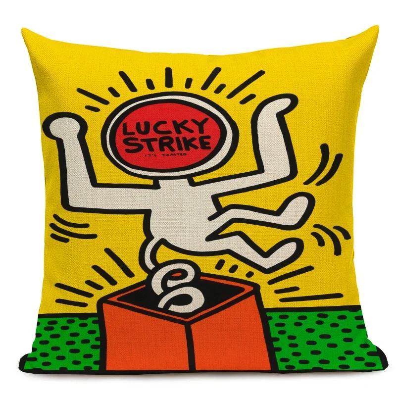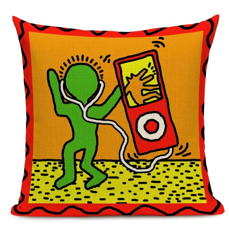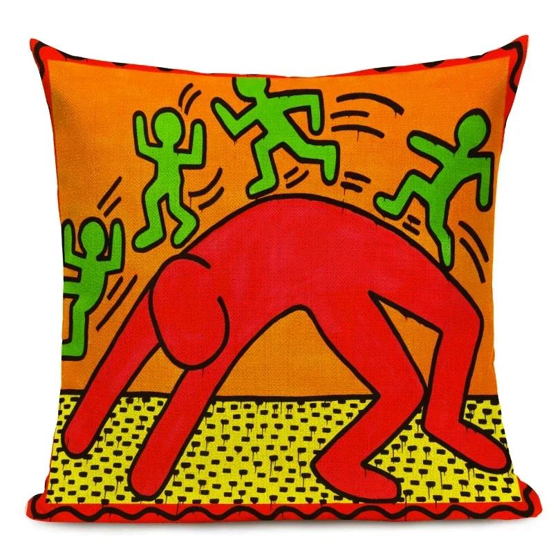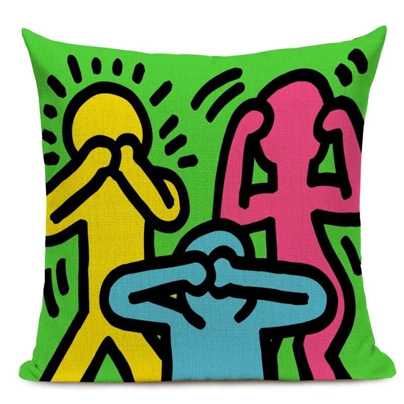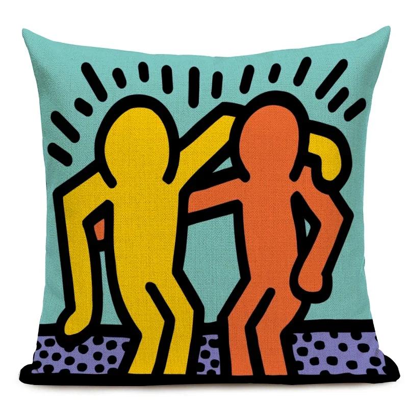 Чехол для подушки с фигурами в стиле поп-арта и граффити, цветная декоративная наволочка с абстрактным рисунком, квадратная льняная наволочка для подушки
