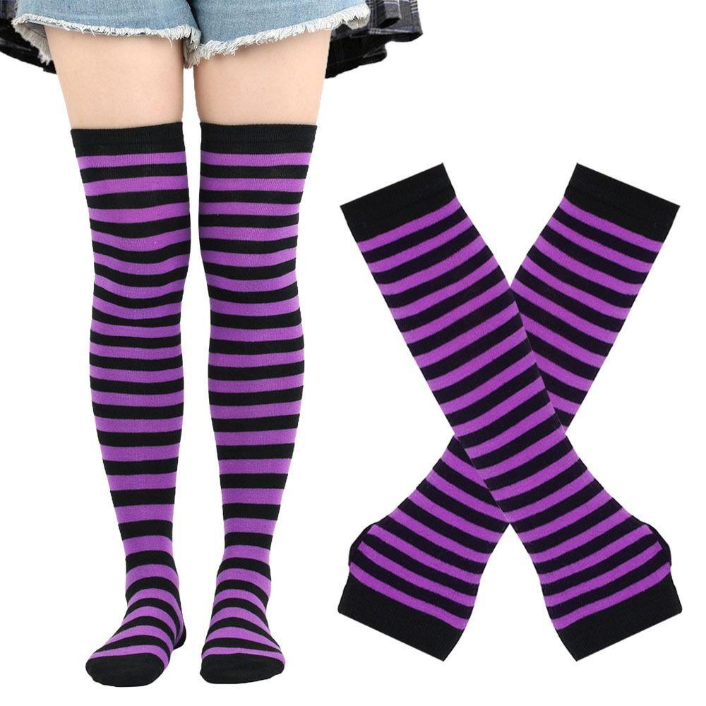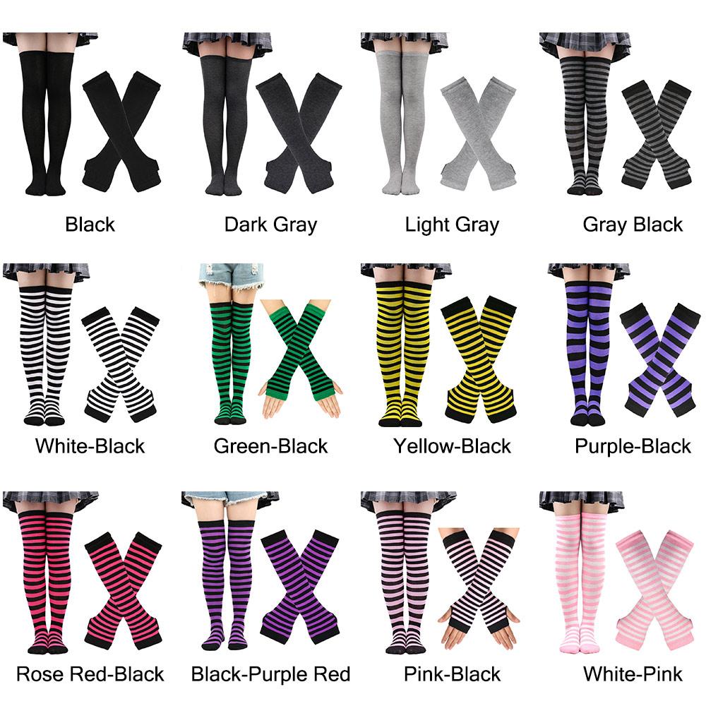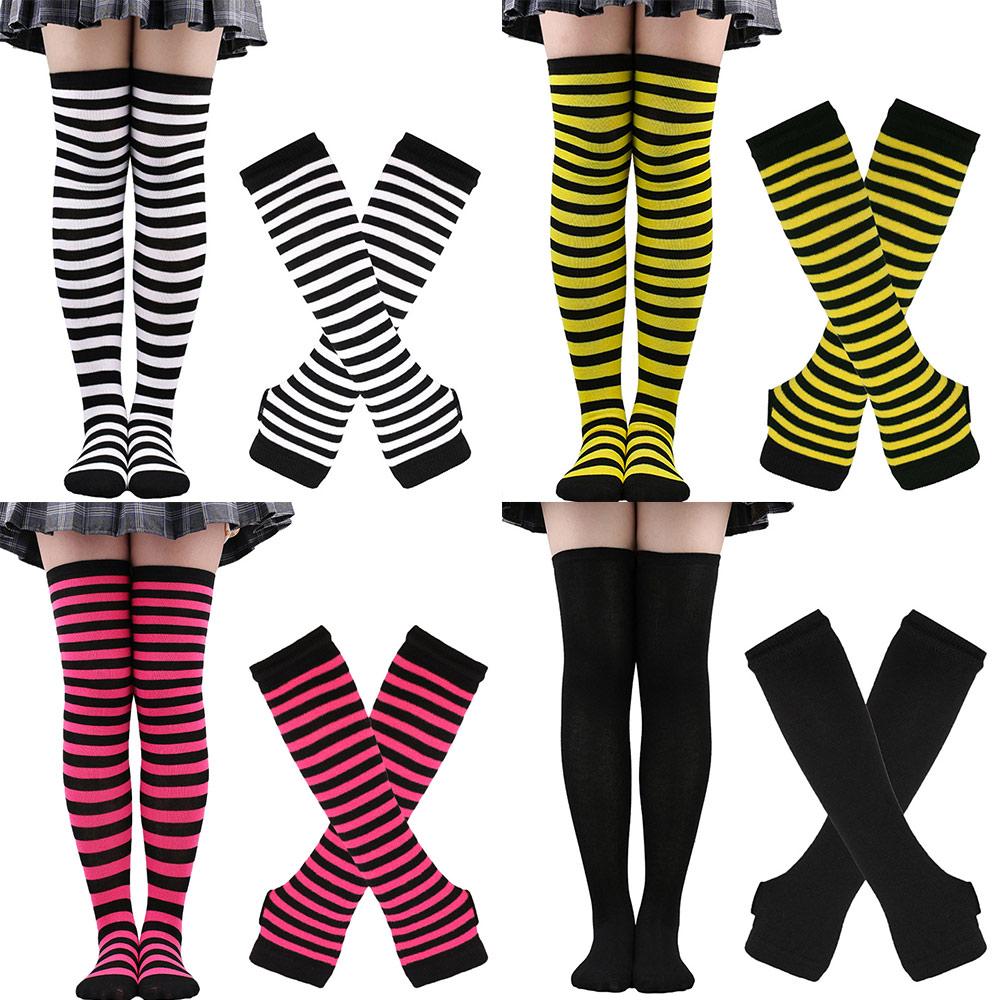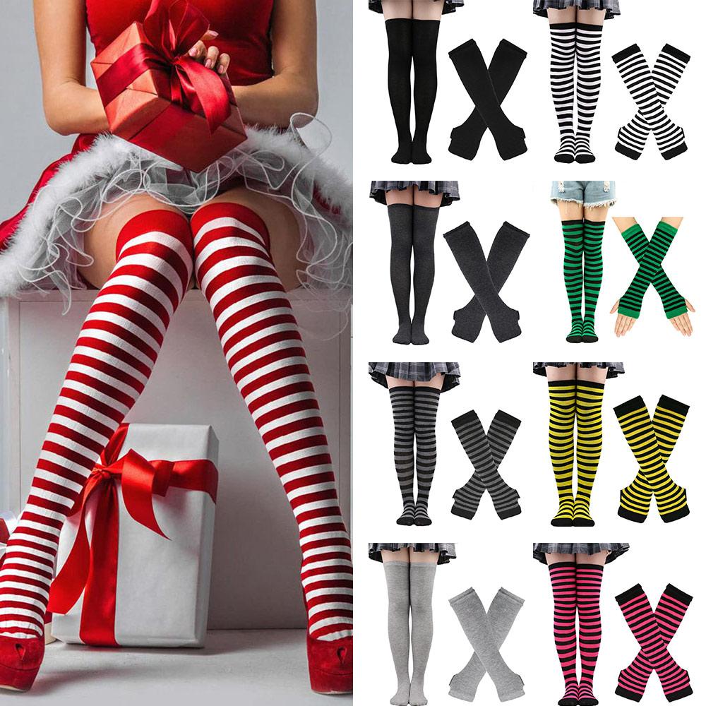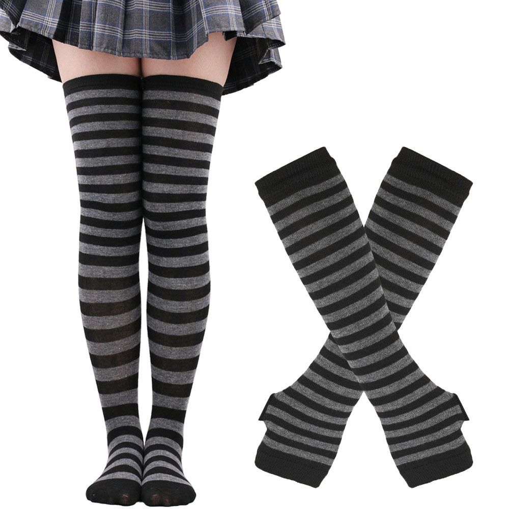 Для костюма на Хэллоуин Y2K Лолита Митенки Полосатые гольфы выше колена для женщин