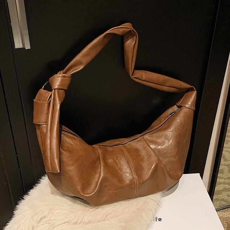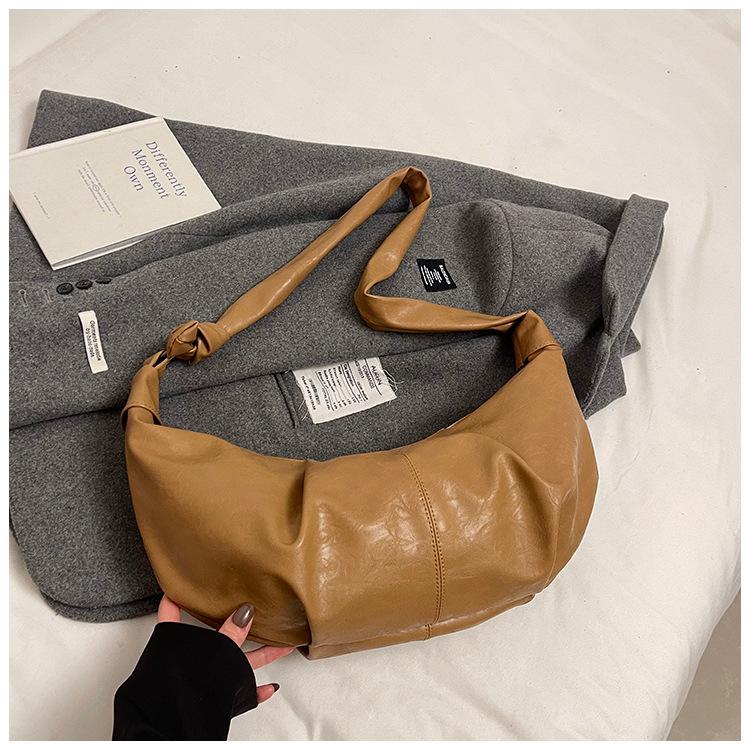 Вместительная ретро-сумка-пельмень из мягкой кожи с плиссировкой, в ленивом повседневном стиле, универсальная, с рогом, на плечо, мессенджер