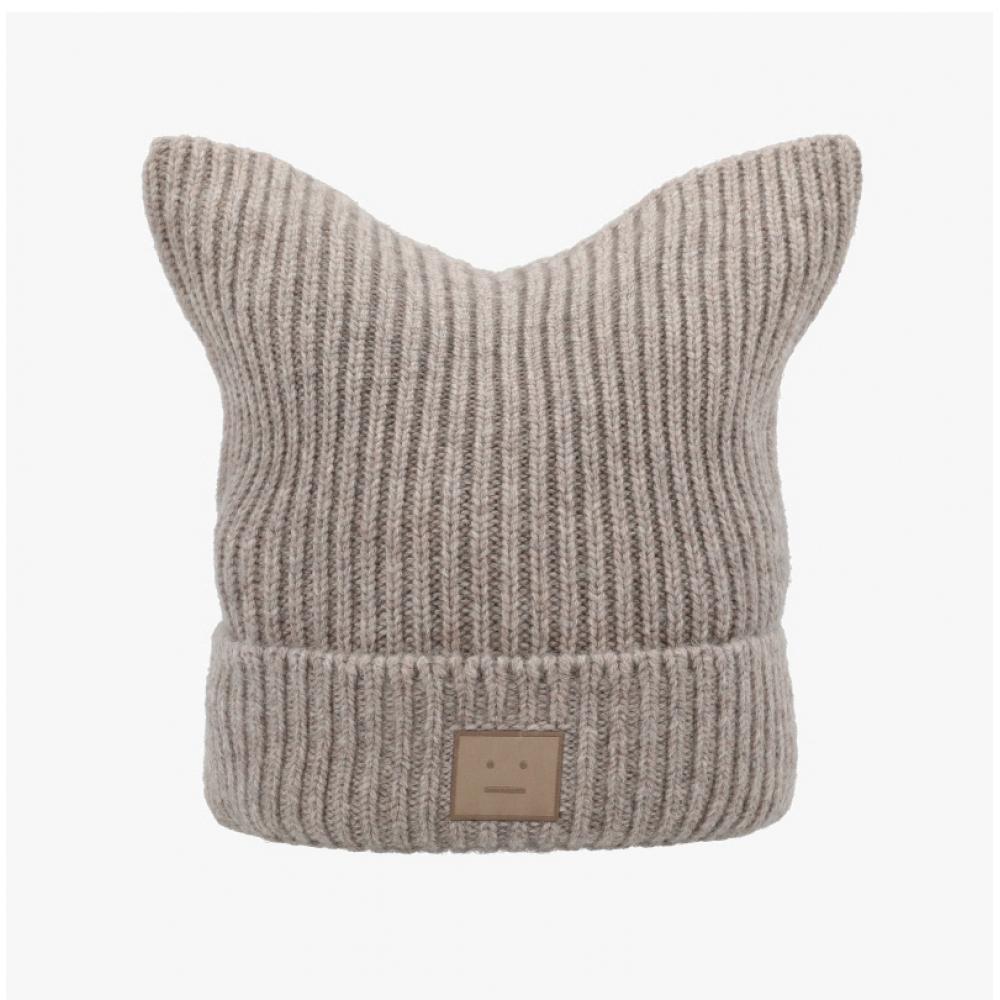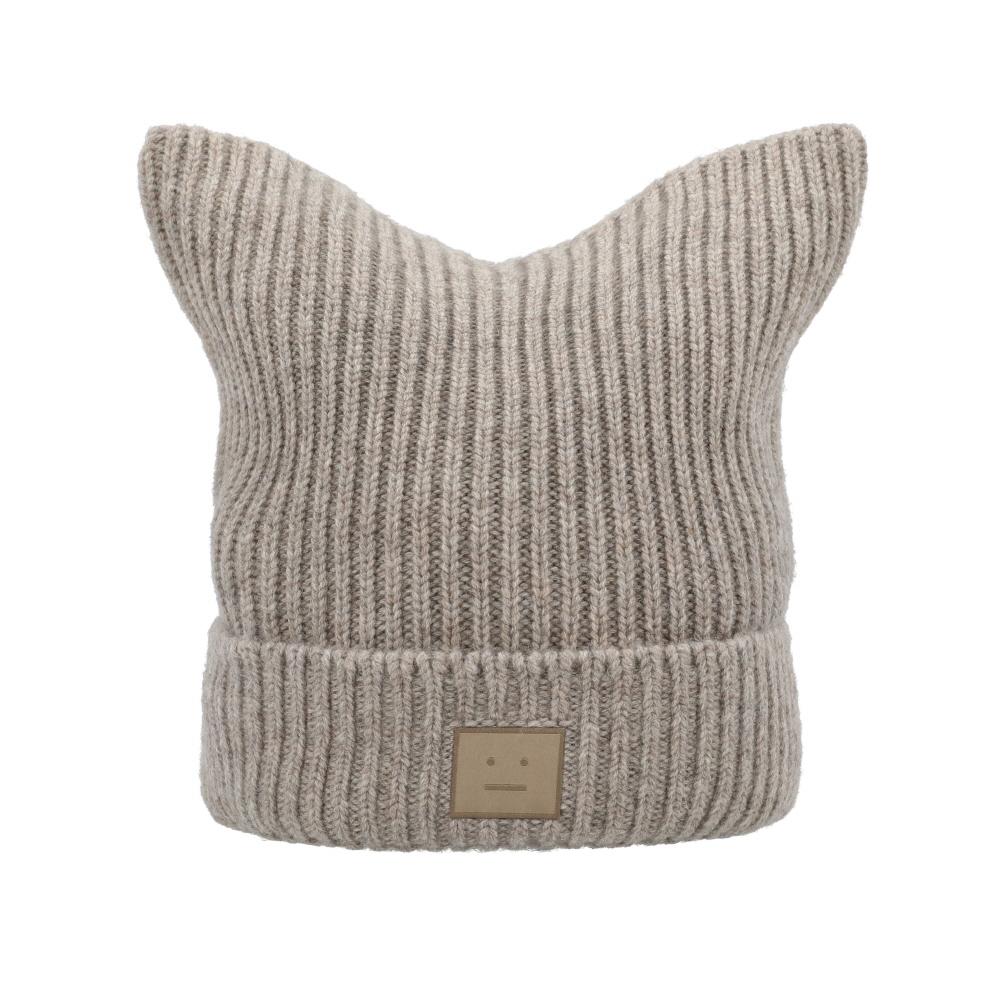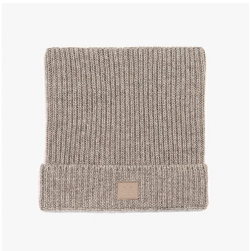 Acne Studios Face Logo Patch Square Beanie C40392 Greige Melange Drn