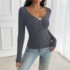 Топ женский облегающий с длинными рукавами и V-образным вырезом, однотонный, на пуговицах, в стиле Y2K, осенне-зимний