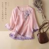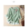 Этническая льняная рубашка с вышивкой, рукавом три четверти и косой планкой для женского летнего нового топа-блузки