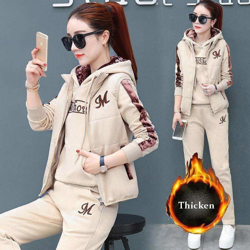 Комплект из 3 предметов, женский костюм, спортивный костюм, зимние толстовки + жилет + брюки, спортивный костюм, бархатные теплые спортивные костюмы, женская одежда 8110924