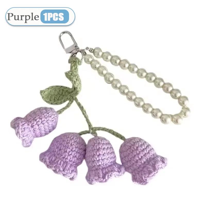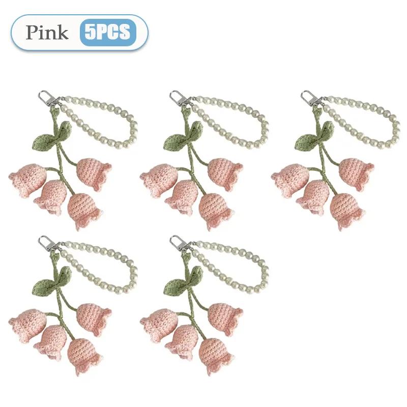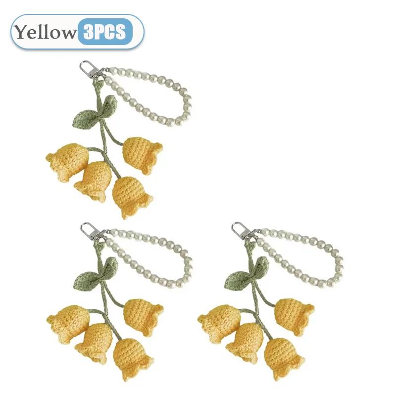 1-20 шт. Креативный шерстяной вязаный крючком брелок для ключей в виде цветка орхидеи, милый брелок с жемчужной цепочкой для девочки, ручной работы, вязаный кулон для сумки, подарки