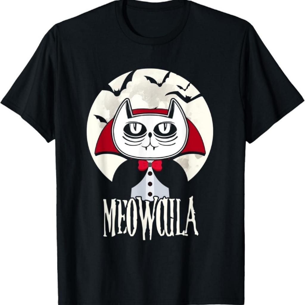 Мяукула Забавная Кошка-Вампир Дракула Хэллоуин Футболка