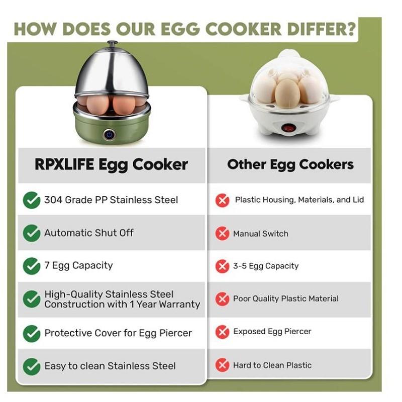 БОНУС МЕРНЫЙ ЧАШЕК: Используйте мерный стакан, чтобы добавить столько воды, сколько вам нужно.. Чашка имеет шкалу для облегчения процесса варки яиц.. Наши электрические яйцеварки также имеют функцию автоматического отключения.