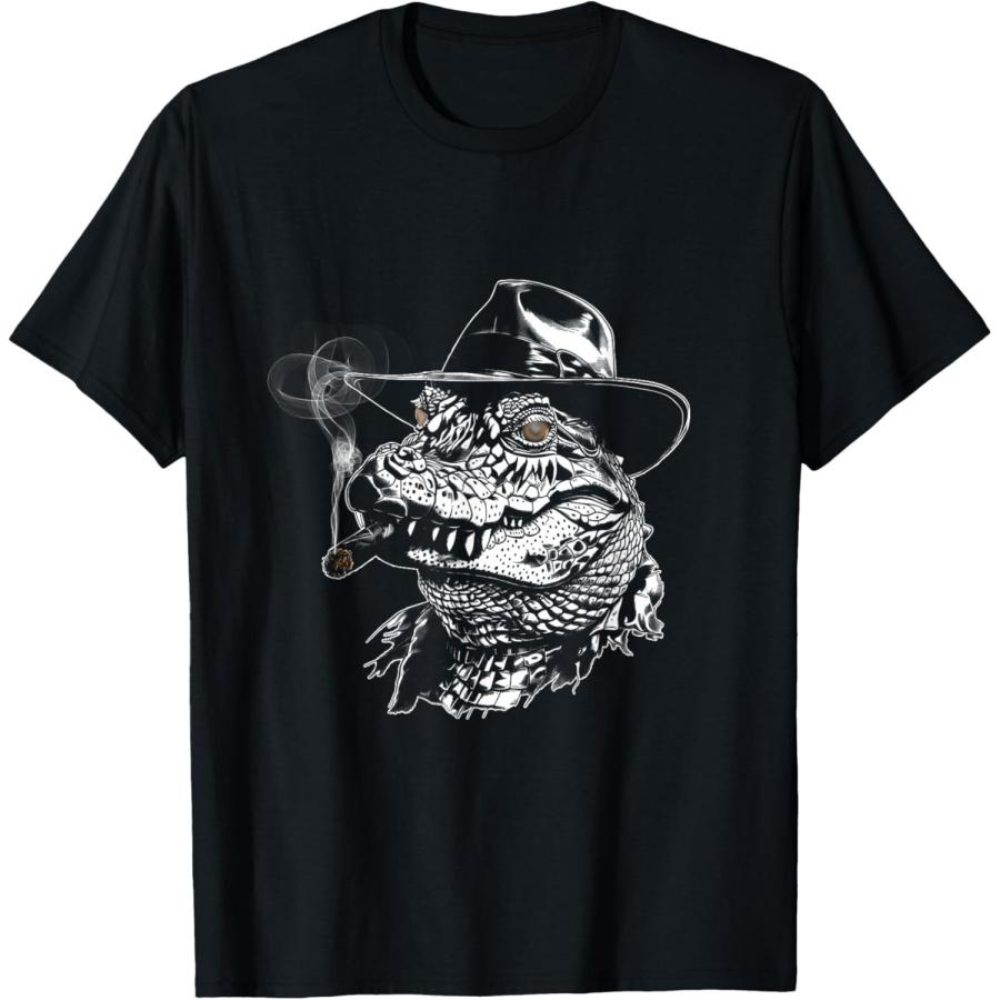 Смешной ковбой крокодил курит, трендовое животное-стоунер, футболка-мем