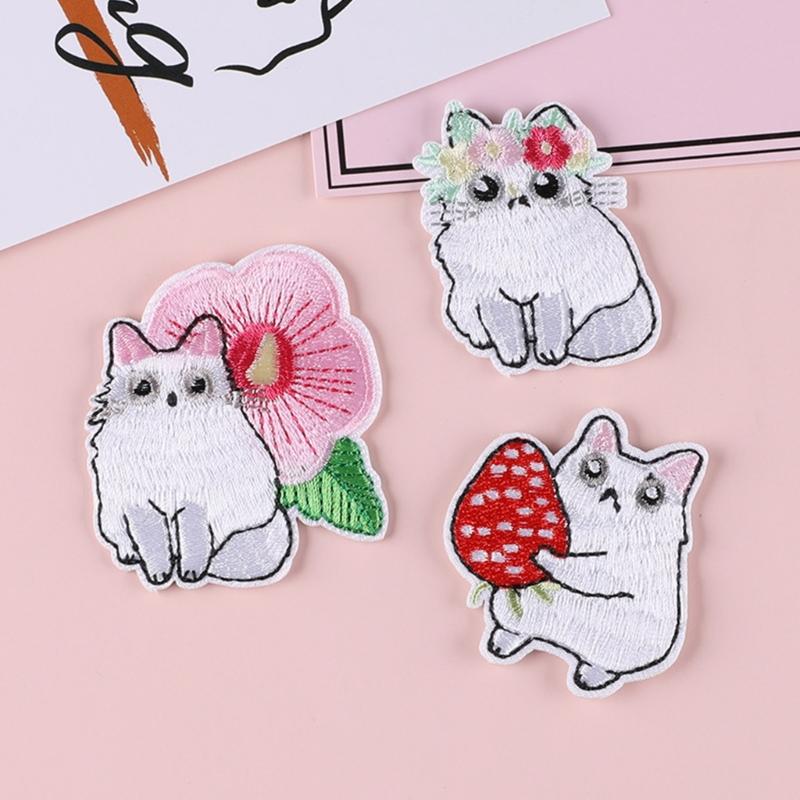 12 Pcs Cartoon Animal Embroidered Patches White Cats Sewing Patches Iron On Patches Applique Patches Sew On Patches
