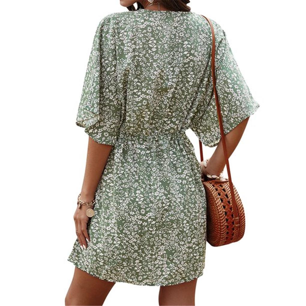 ZXZY Женское платье с принтом, пуговицами, завязкой на талии и короткими рукавами