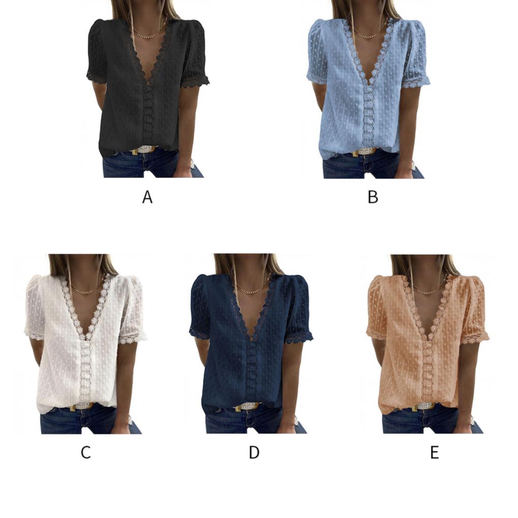 В шею: Рубашка для девушки с V-образным вырезом связана кружевным крючком и однотонным дизайном, что стильно и сексуально для вас.